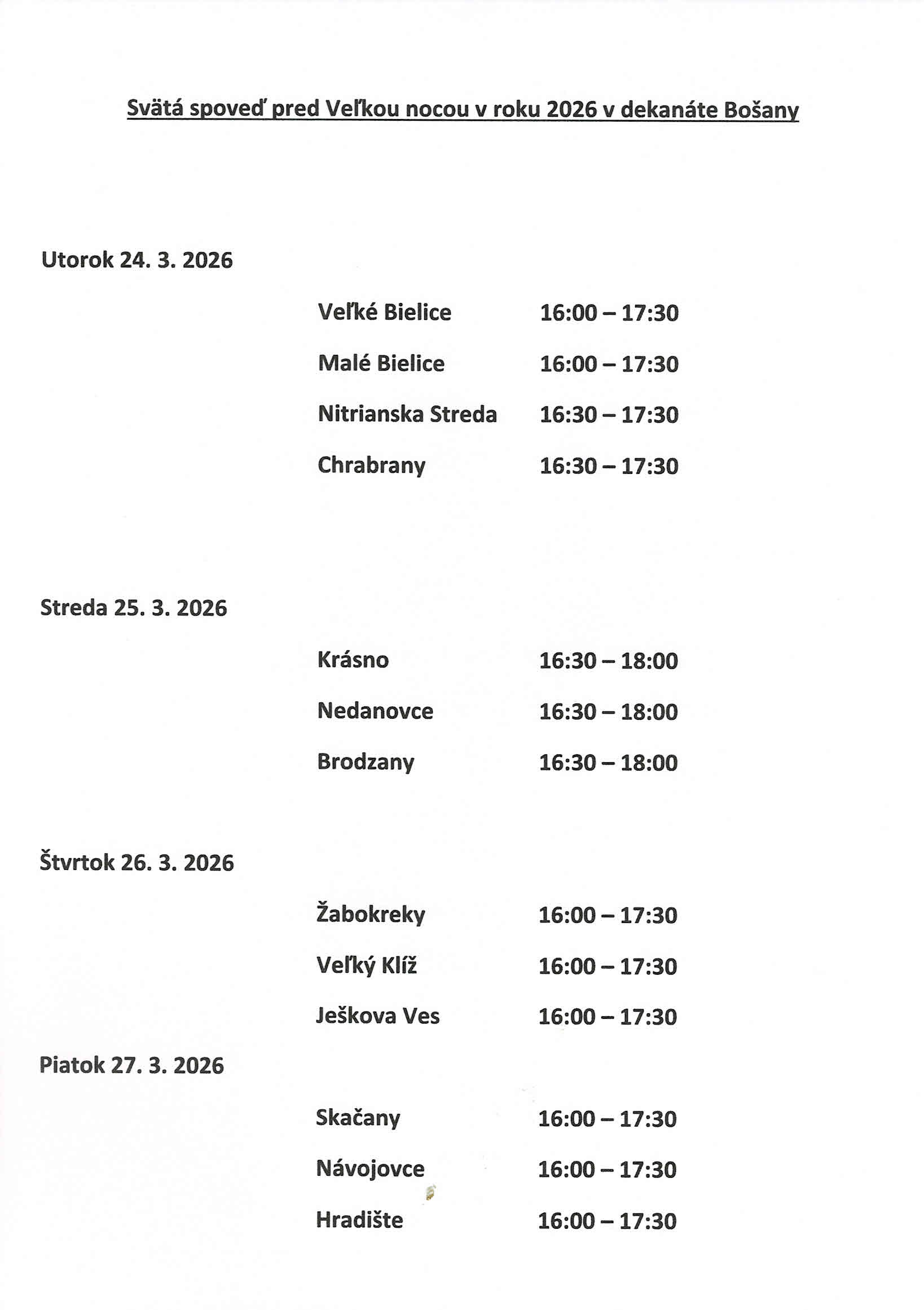 Spovedanie pred Veľkou nocou - 2026